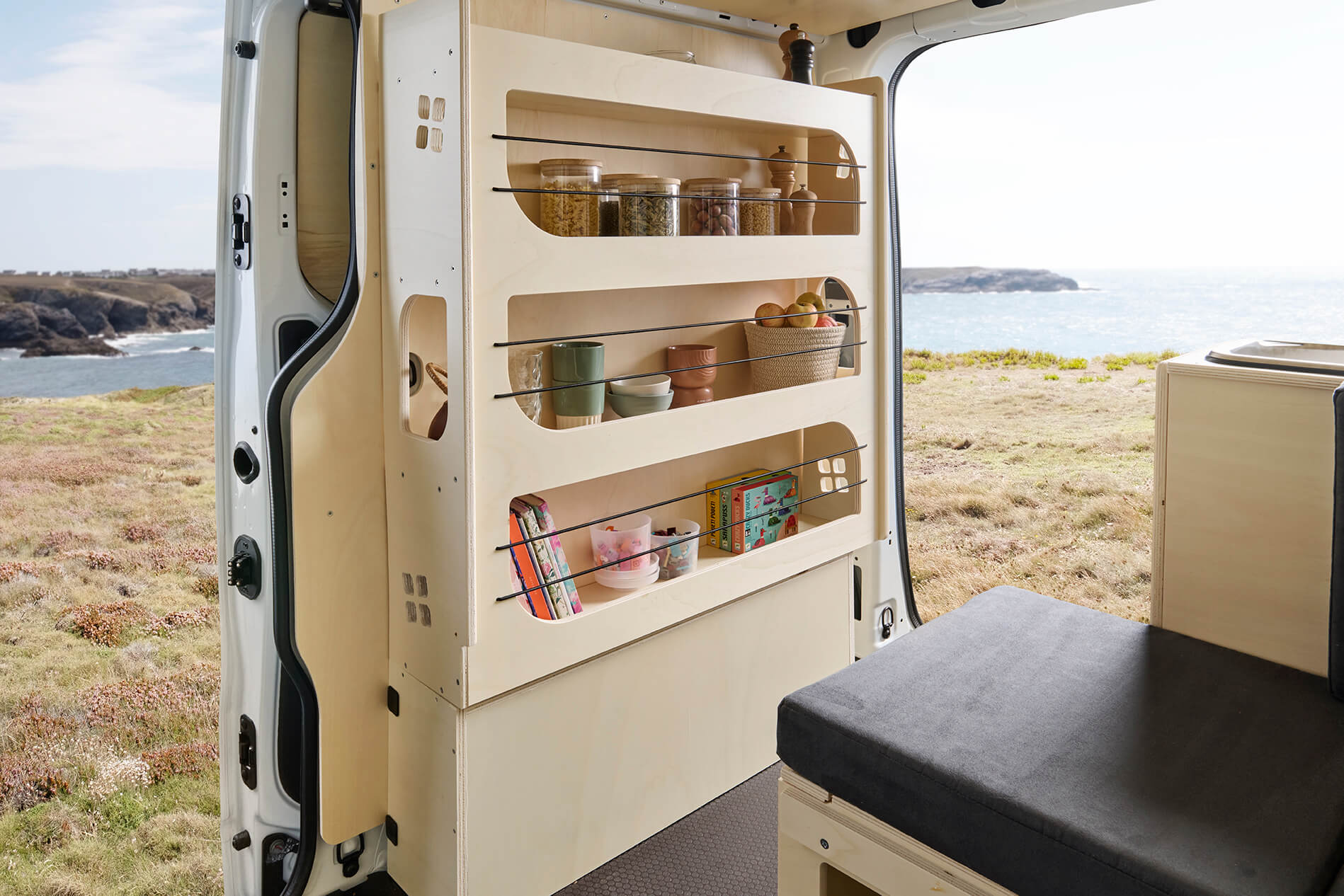 Nos kits d’aménagements sont entièrement modulables, vous permettant de choisir entre le loisir et l’utilitaire. Les parois et le plancher sont adaptés à cette double utilisation.